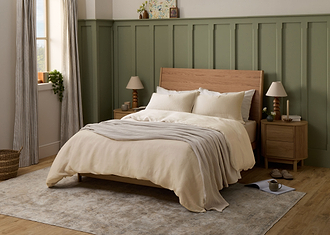 Our Cool Linen bedsheets are a unique blend of linen and Tencel. While pure linen is cool to the touch, breathable and naturally textured, it can feel scratchy. But combining it with famously heat-regulating Tencel creates something new: a softer, cooler fabric that’s effortlessly comfortable and luxurious – and doesn’t need ironing.